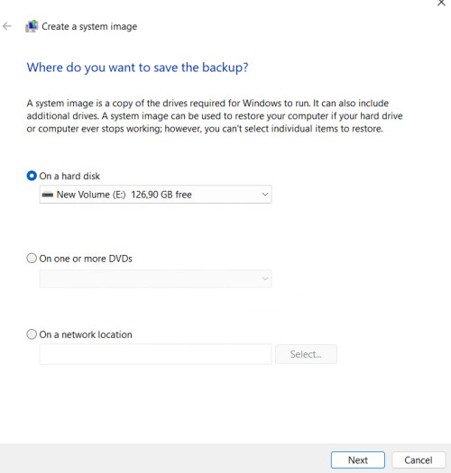 Since Windows Vista, so also in Windows 10 and Windows 11, an image(system image)can be created from the hard disk to a network drive or a removable disk, such as a USB hard drive .The image can then be restored to the same or another hard disk using the setup CD / DVD or a system repair disk.