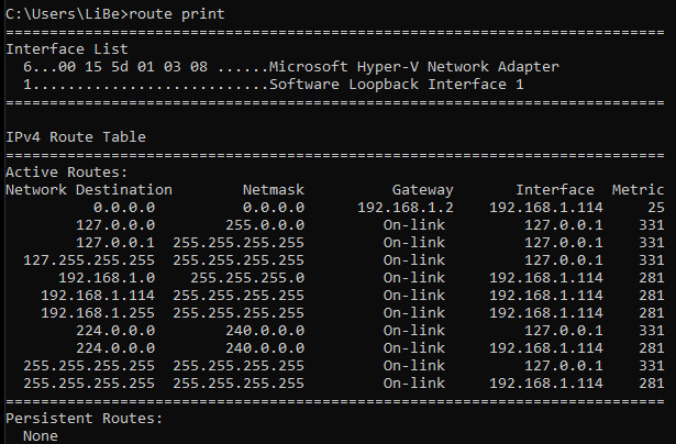 The default gateway, for example, is used if no entry exists for a certain network, i.e. all networks. The default gateway always appears with the network destination 0.0.0.0 and with a network mask of 0.0.0.0.
