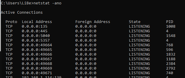 | Foreign Address | Connection to the address with the indicated port (The port is after the ":" ) |
