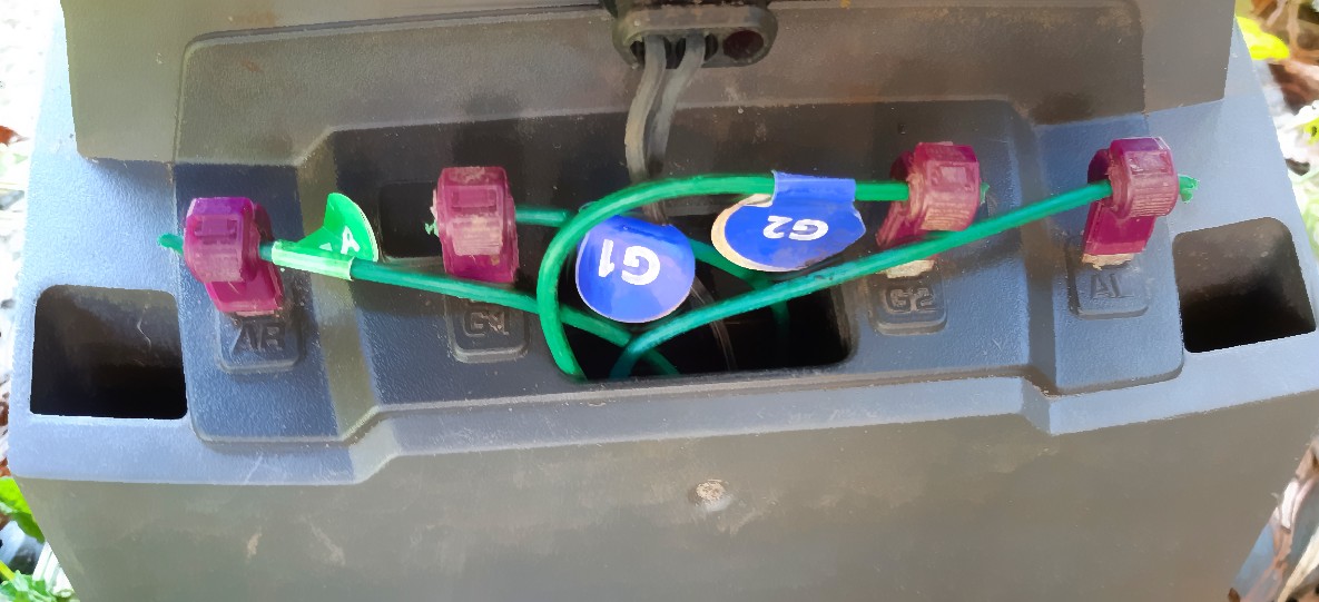 After the search loop is then connected to the edge boundary, the signal should still be faintly audible on AR and AL, i.e. on the edge boundaries, if the cabling works. If the signal no longer arrives at AL, for example, the interruption is between the plugged-in G and AL. If the cable is a little deeper in the ground after a few years, the signal is often a little more difficult to hear at certain points: the radio very close to the ground, but it should still be perceptible. If a place is found from which absolutely nothing more is to be heard, the cross-check can be made by reconnecting the cables.
