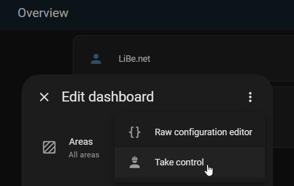 The start page, called "Overview", is automatically compiled from all available sensors. You can create your own dashboards based on this overview:"Take control", or under "Dashboards" settings.