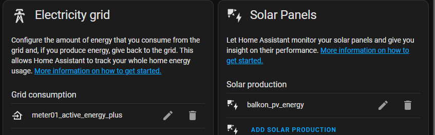 In order for the energy dashboard to visualize the data, it is sufficient to add the corresponding consumption meters: