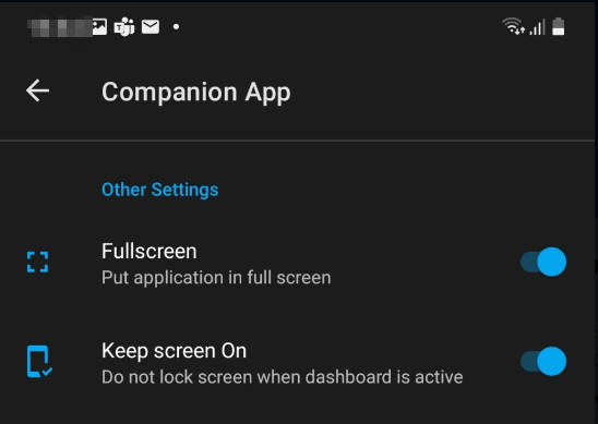 In the app in Settings, Companion App,  I turned on "Fullscreen" and enabled "Keep screen On":