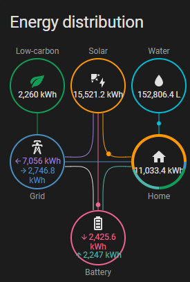 For the last 365 days, the energy distribution of my house in Home Assistant looks like this: