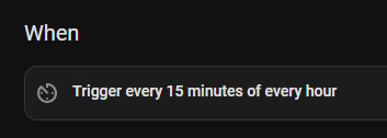 The automation is started every 15 minutes, which has the advantage that a restart of Home Assistant has no effect on the automation: