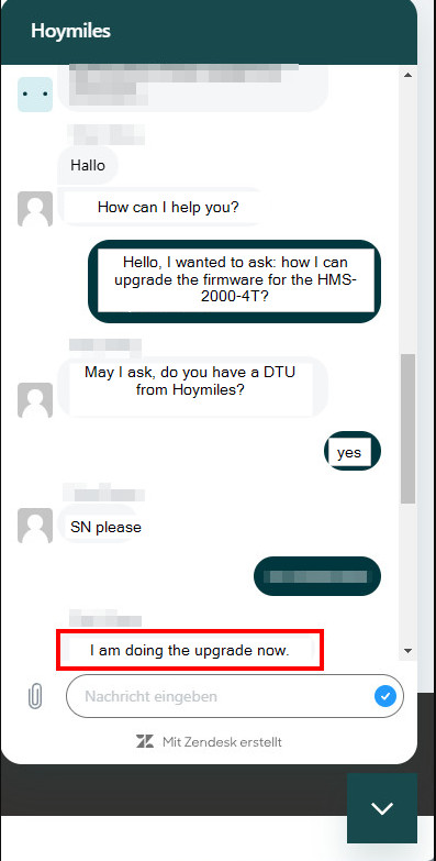 A firmware update can only be initiated by Support with an existing Hoymiles DTU: