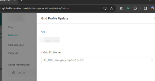 The open source projects provide all relevant data, can limit the performance to a certain value and read out the grid profile used, but unfortunately cannot yet upload this. As described, a DTU from the manufacturer and an S-Miles Cloud installer account or DYI account are required to upload the grid profile.