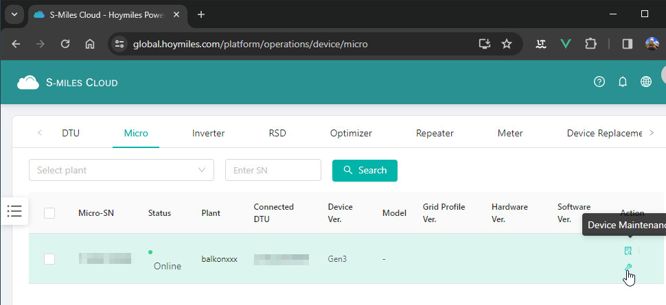 From this point on, the DTU is connected to the Internet and the system is set up so far. Continue on the Hoymiles website: https://global.hoymiles.com/