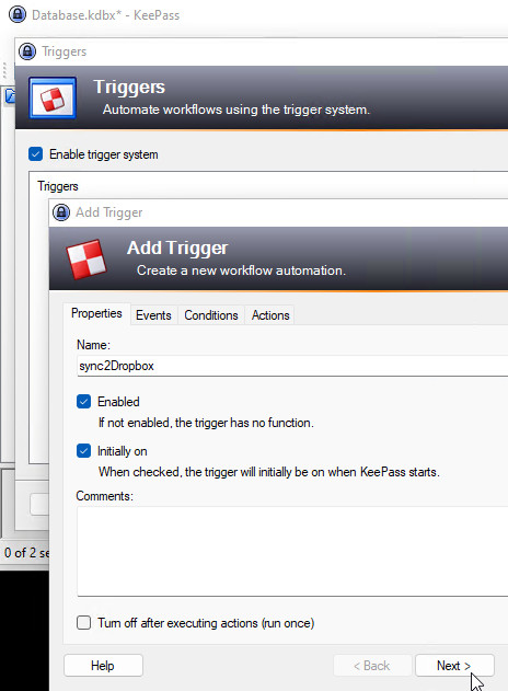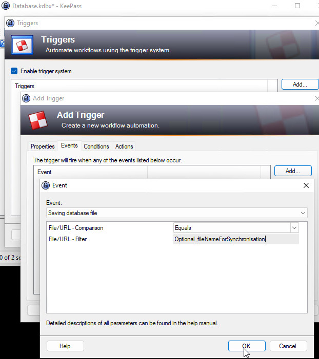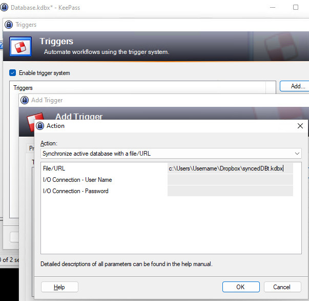 Trigger for synchronization of a KeePass database with Dropbox, Google Drive or any remote storage.