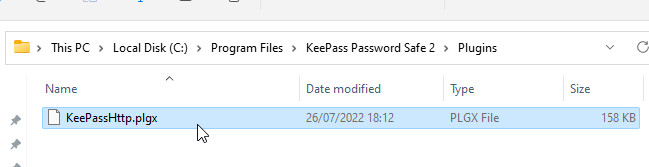 In preparation for browser integration, the keepasshttp plugin must be added: