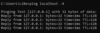 Reply from 127.0.0.1: Bytes=32 Time<1ms TTL=128