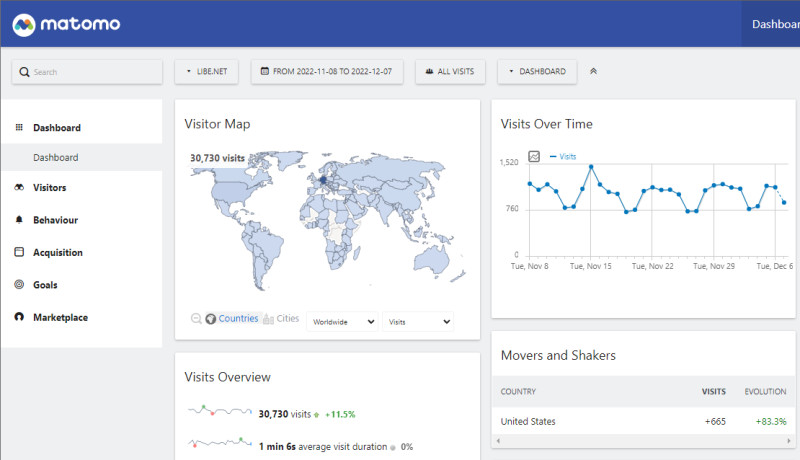 Visitor statistics: Matomo, Google Analytic replacement self-hosting