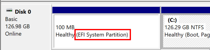The easiest way to determine whether EFI is in use is in the Disk Management. In the case of UEFI, there is an EFI system partition at the beginning of the boot hard disk: