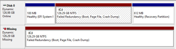 As a basis for mirroring, the hard disk must be converted into a dynamic disk. Originally, dynamic disks were an innovation, but today they are rather exotic and more a relic of times past. Even though converting a BASIS disk to dynamic usually makes no difference in practice, the conversion should be considered briefly because it cannot be easily undone. Mirroring the Windows partition (c:) is initially a very simple matter and works almost self-explanatory. Anything but self-explanatory is the handling of the additional boot and system partitions. To prepare the computer for the failure of the primary hard disk, the system partitions must be created in the correct order. To ensure that the secondary hard disk gets the same partition IDs, it must be converted to dynamic only last. Since mirroring the C disk creates the partition on the second disk by itself, but this is not at the end of the disk by default, this is a bit of a chicken-and-egg problem. I was only able to solve the problem by creating a partition with the exact size of the C partition as a placeholder for the mirror on the second hard drive, and removing it later.