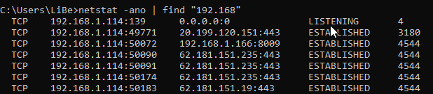 PS C:\Users\LiBe> Get-NetTCPConnection | where RemoteAddress -Like "116*"