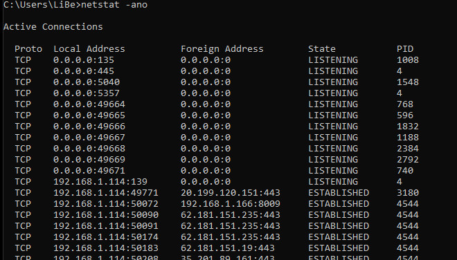 PS C:\Users\LiBe> Get-NetTCPConnection