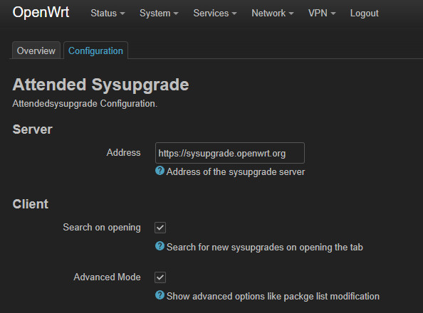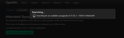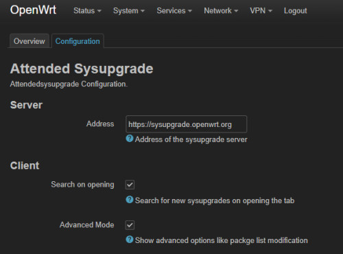 Attended Sysupgrade searches for new firmware versions and can request and install them, including all settings and software packages.