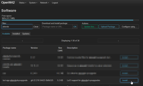 The luci-app-attendedsysupgrade package can be easily installed from the software menu: