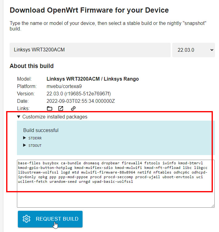 Using the firmware selector, specific packages can be added and installed as part of a customized image along with the firmware: