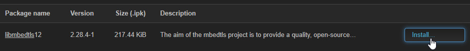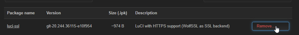 The selection of the required packages can be compiled beforehand using the firmware selector and an image created from this. As an example, the package wpad-basic-mbedtls can be replaced with wpad for use as an access point and additional packages can be added without filling the storage disk space unnecessarily.