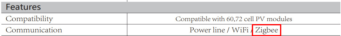 I could also find a reference to Zigbee in the MECD communications gateway offered by Deye: