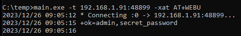 main.exe -t 192.168.0.??:48899 -xat AT+WSKEY