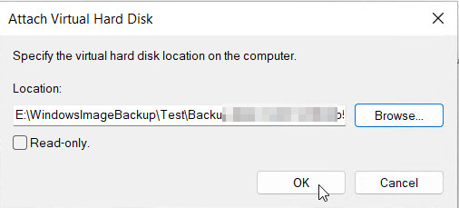 Select the hard disk image, usually the larger file, then still: Change drive letter and paths: