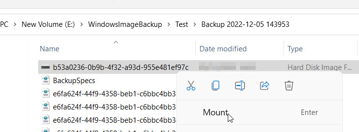 In addition to a complete restore of the PC, the system image backup can easily be mounted in the disk management and thus individual files can be restored from the image.