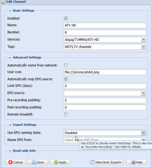 The setting "Use EPG running state" causes the recordings to be cut off for certain channels. The setting can be deactivated per channel, whereby the "Pre-recording padding" and "Post-recording padding" of the recording profile is used: