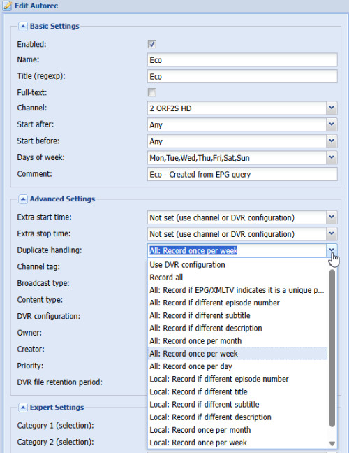 I then adjusted the duplicate handling and DVR file retention period for certain "auto recordings":
