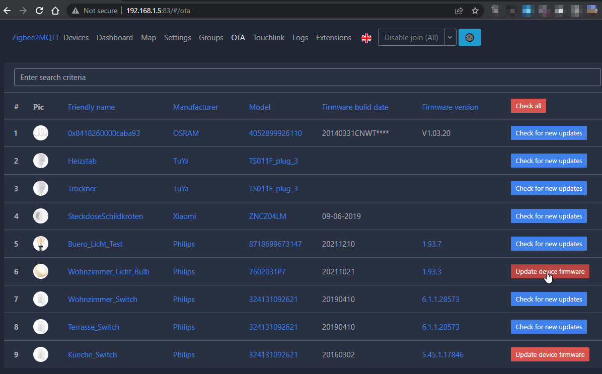 For certain devices Zigbee2MQTT suggests new firmware versions and can install them if needed: