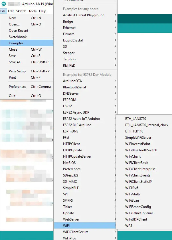 Sind alle Vorbereitungen für das Programmieren eines ESP32 getroffen, können die in der Arduino IDE vorhandenen Beispiele angepasst und auf den ESP32 hochgeladen werden:
