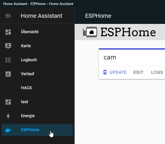 ESP-Home als Menüpunkt in der Home-Assistant Sidebar