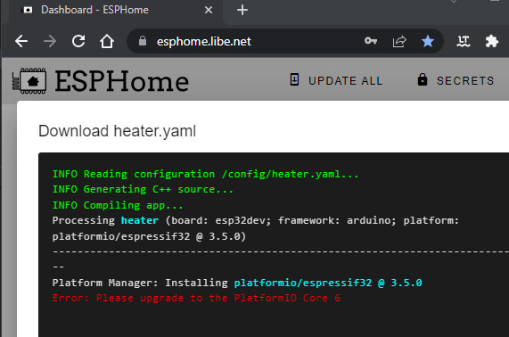 Mein erster Versuch endete mit folgendem Fehler: "Please upgrade to the PlatformIO Core 6"