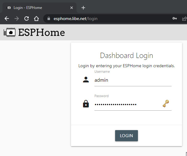 Wer ESPHome als AddOn unter HAOS einsetzt, kann ESPHome direkt in Home Assistant aufrufen. Bei Verwendung eines Docker-Containers erfolgt der Aufruf über die angegebenen Domain (https://esphome.domain.tld): ESPHome meldet sich dabei mit einer Login-Maske. Der Benutzername und das Passwort können in der docker-compose.yml-Datei vorgegeben und geändert werden.