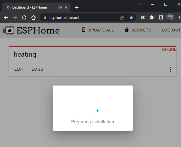 Für Änderungen am Programmcode oder für das Debugging musste ich mit Arduino entweder einen Laptop im Heizraum anstecken oder bei gröberen Änderungen den Mikrocontroller ausbauen und diesen an einem gemütlicheren Ort programmieren: Dann mehr oder weniger blind ohne Sensoren, da diese ja im Heizraum verbaut sind. Grund genug um ESPHome zu testen.