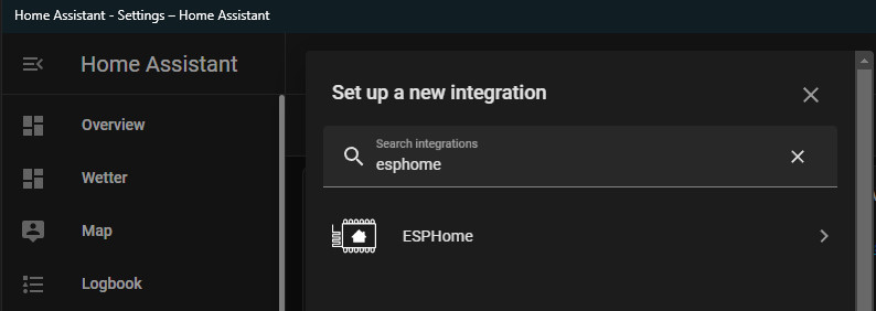 Damit die Mikrocontroller als Geräte in Home Assistant auftauchen, benötigen wir die ESPHome-Integration: