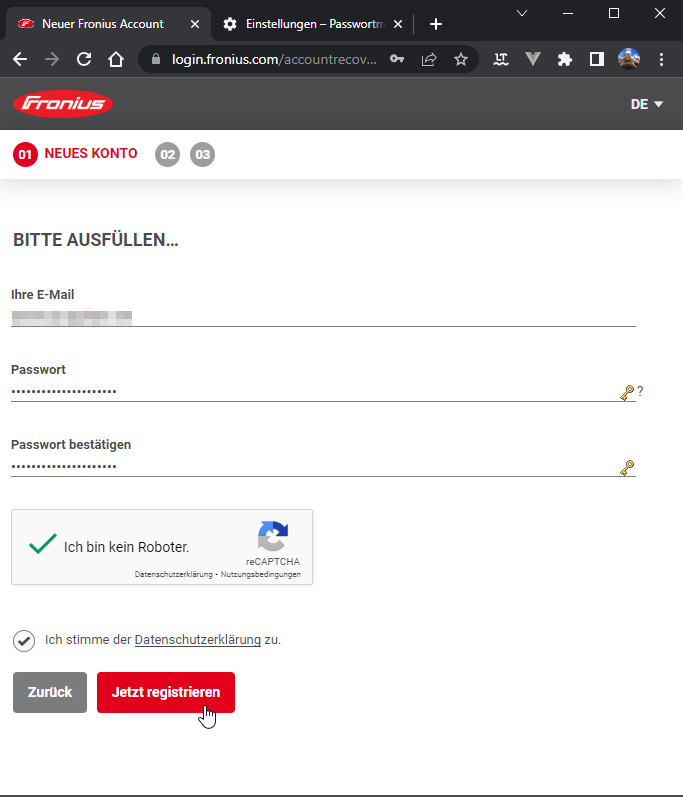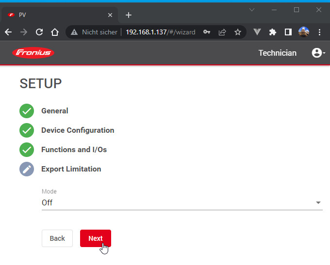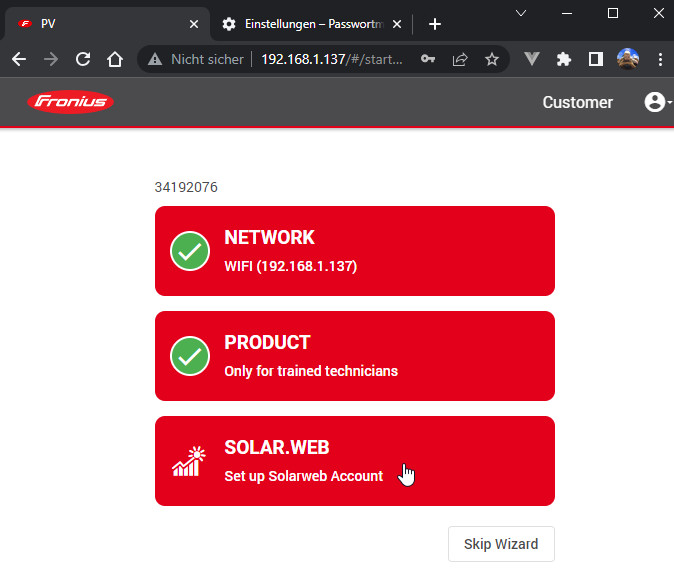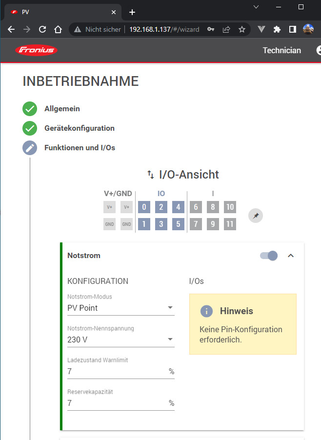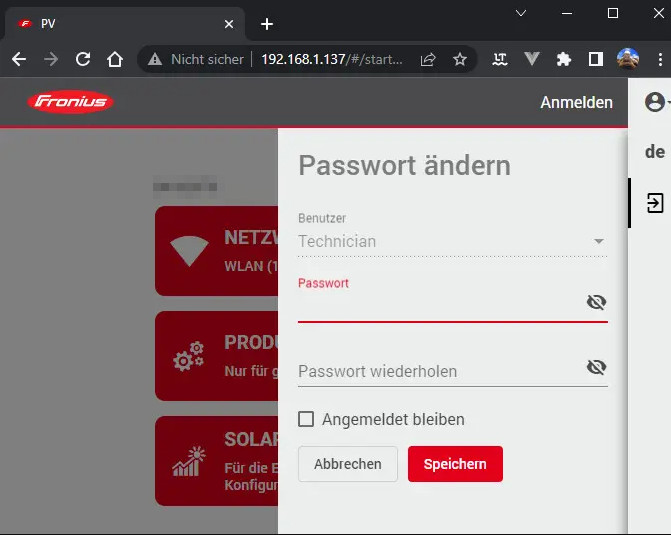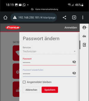 Hallo Bernhard, habe auch ein Gen24 gekauft wurde aber noch nicht versendet. Ich bin eine Privatperson und möchte meine Anlage selber montieren. Kann ich mir mein "Technician Passwort" beim ersten Einrichten des Wechselrichter neu vergeben lassen? Oder muss ich dazu beim Anmelden auf der Fronius Seite ein Händler sein?(dazu müsste man eine UmsatzsteuerNummer eingeben) Bin schon Stunden beschäftigt dazu eine Antwort zu bekommen. Wäre super net wenn Du mir dazu kurz helfen könntest. Grüße Tom