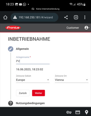 Fronius Gen24 Inbetriebnahme: Anschluss > Setup > Anbindung
