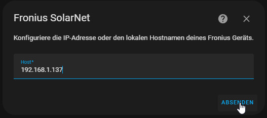 In Home-Assistant kann dann die Integration "Fronius" hinzugefügt und der Wechselrichter verbunden werden: