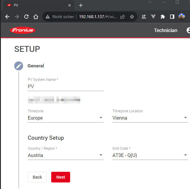 Bei der eigentlichen Inbetriebnahme ist es essenziell das richtige Land und den vorgeschriebenen Länder Setup auszuwählen, da der Wechselrichter ansonsten nicht ans Netz gehängt werden darf.