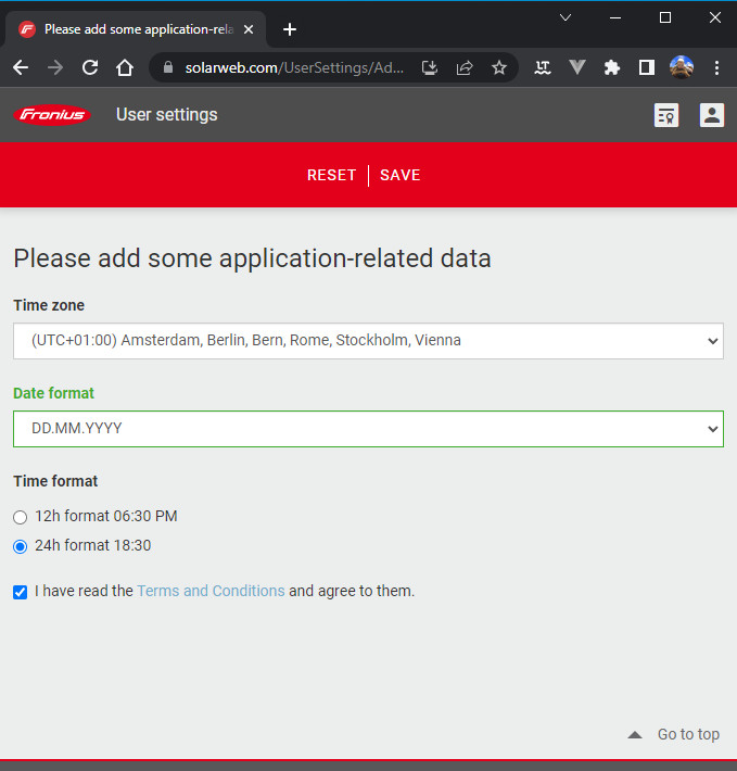 Wer die Fronius-Cloud-Lösung inklusive Fronius-App nützen möchte, kann den Wechselrichter mit einem SOLAR.WEB-Konto verbinden: