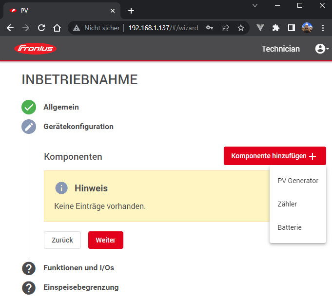 Hallo Tom, das Kennwort für den Techician-User kann bei der initialen Einrichtung vergeben werden: Wie in den obigen Screenshots gezeigt.