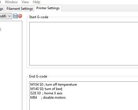 Der End-GCode benötigt natürlich kein Abschalten der Druckdüse und des Heizbettes: