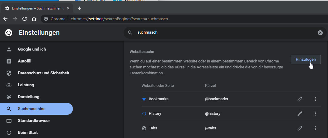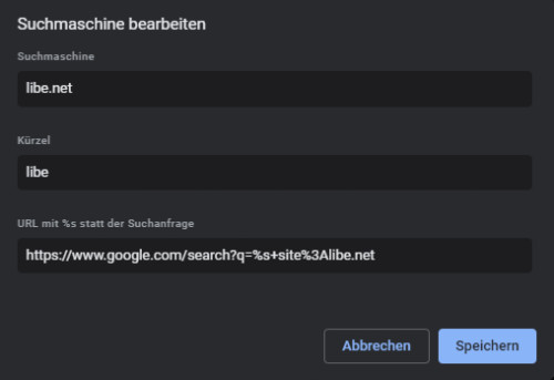 In Google Chrome können für eine schnellere Suche Kürzel angelegt werden: