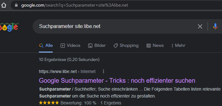 site: Suche auf einer bestimmten Seite Suchbegriff site:libe.net