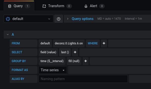Eine Kleinigkeit war für mich am Anfang nicht ganz selbsterklärend. Beim Erstellen eines Charts mit True/False-Werten muss "Select" auf "last()" geändert werden, ansonsten kommt der Fehler: unsupported mean iterator type: *query.booleanInterruptIterator