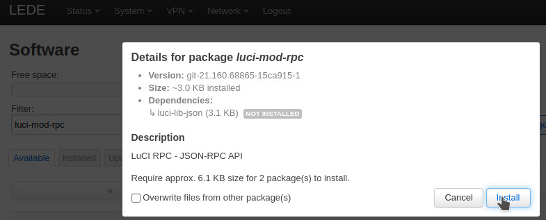 Für OpenWRT wird dazu das Paket luci-mod-rpc vorausgesetzt.