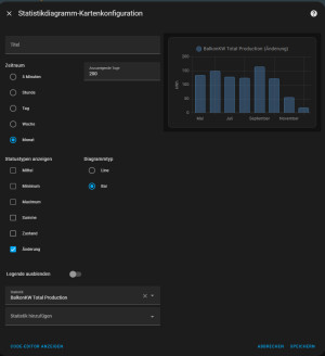 Ohne zusätzlicher Integration können historische Daten über die Lovelace-Karte "Statistikdiagramm" visualisiert werden: