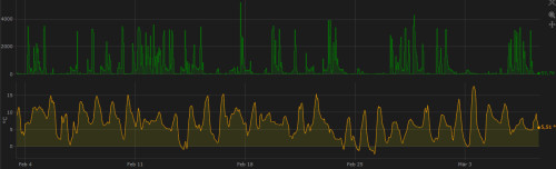 Wechsle ich hingegen auf "Stunde", verwendet die Karte offensichtlich die Tabelle "statistics" und zeigt auch Daten die älter als 10 Tage sind an: